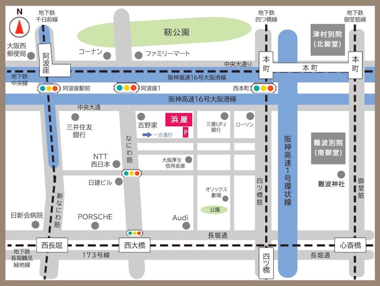 地下鉄谷町線「駒川中野駅」出口を出て南港通りを東に徒歩10分。近鉄「針中野駅」出口を出て北へ徒歩5分。南港通りを東に徒歩10分。南港通りと今里筋の交わる「中野」交差点にお店を構えています。