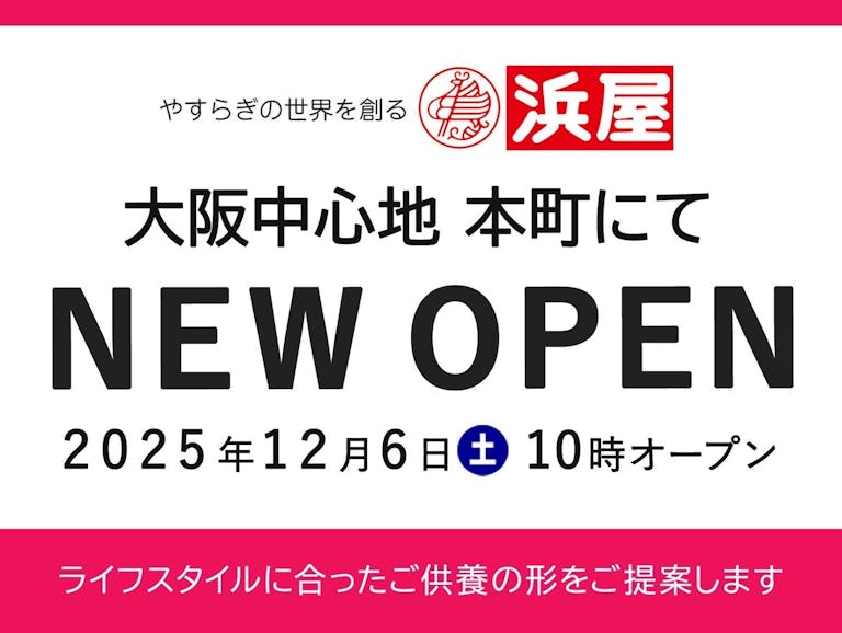 仏事のことなら何でもお伺い致しますので、ぜひ『浜屋 高槻店』へお気軽にお立ち寄りください。