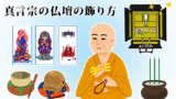 真言宗は分派も多いので、仏壇の飾り方はさまざまです。また、地域によっても違いがあります。