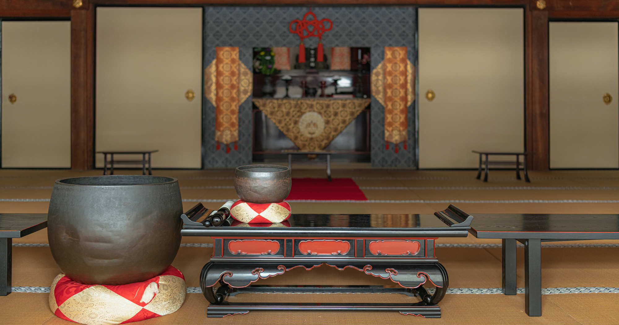 本尊:大曼荼羅(十界曼荼羅)、釈迦牟尼仏、三宝尊のいずれかを祀ります。