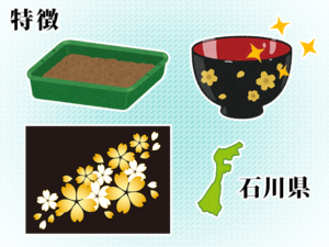 また、輪島塗はその優美さも特徴として知られています。漆器には漆を塗った後で装飾を施すことがありますが、輪島塗の装飾には、絵を彫ってその溝に金を入れる「沈金(ちんきん)」や、漆で絵を描いた上に金銀の粉を振り掛ける「蒔絵(まきえ)」と呼ばれる技術が使用されています。これがその美しさを際立たせているというわけです。