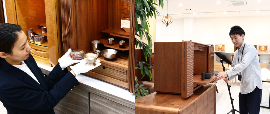 仏壇を購入する際、『どんな棚の上に配置するか?』『周囲のインテリアはどんなものが似合うか?』は気になるところです。そうした豊富な商品ラインナップや、WEBの商品写真撮影などにギフト店としての強みが生かされているということですね。