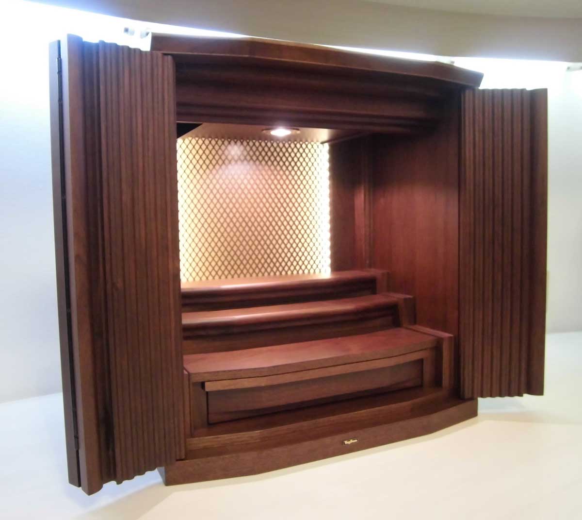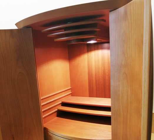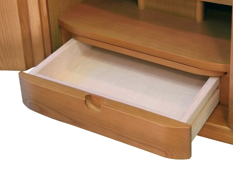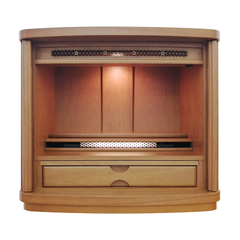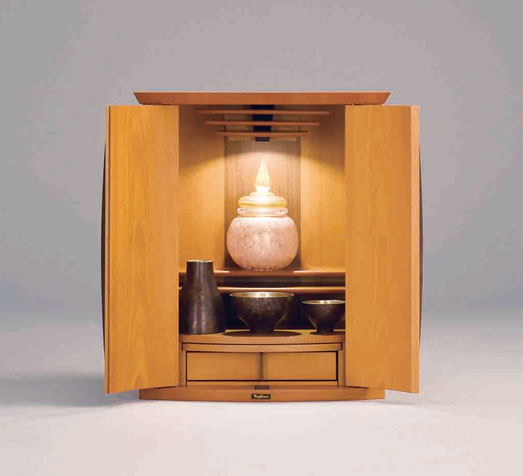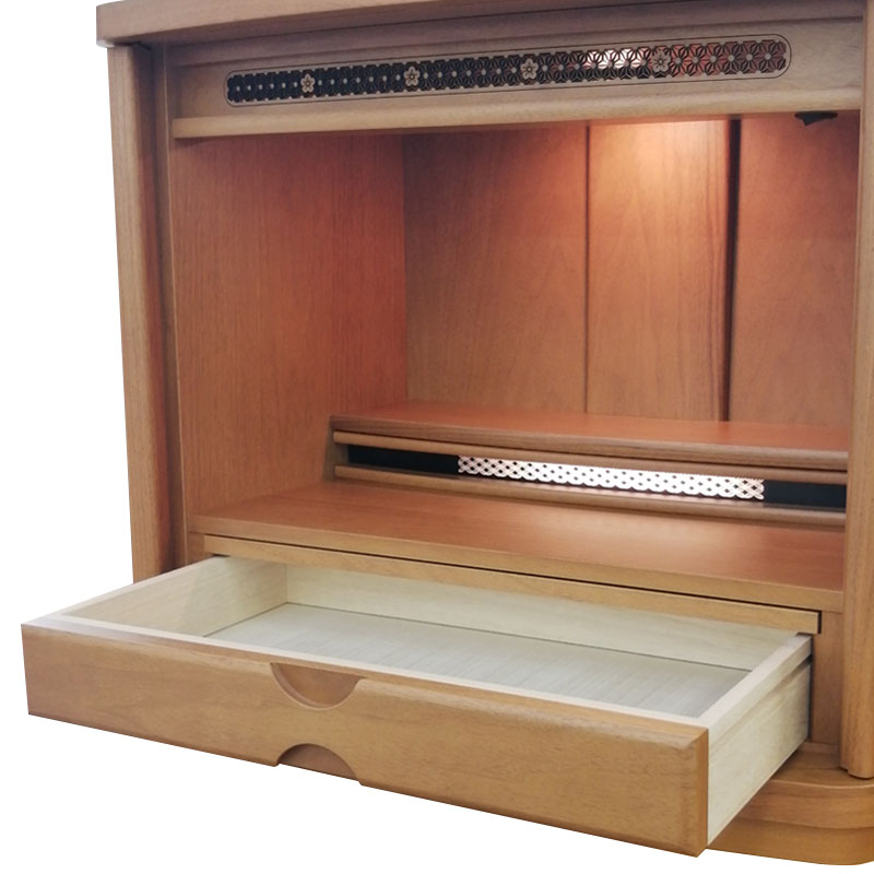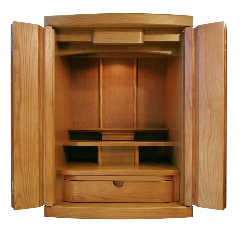 上下前後に位置を変えられる機能的な須弥壇。柔らかさと温かさを感じさせるデザインです。