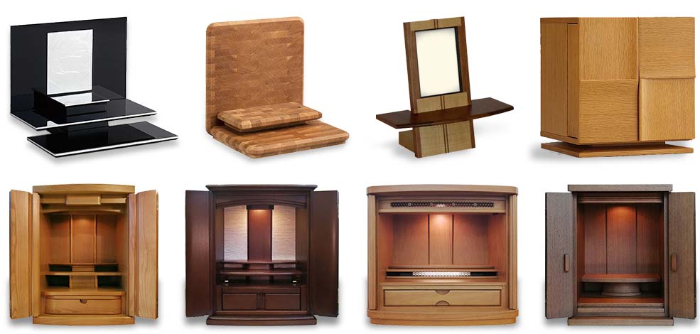 「ミニ仏壇」には、微細な装飾が入った重厚な仏壇から、装飾や棚もないシンプルなもの、一見仏壇とはわからないモダンなものまで、さまざまな種類があります。