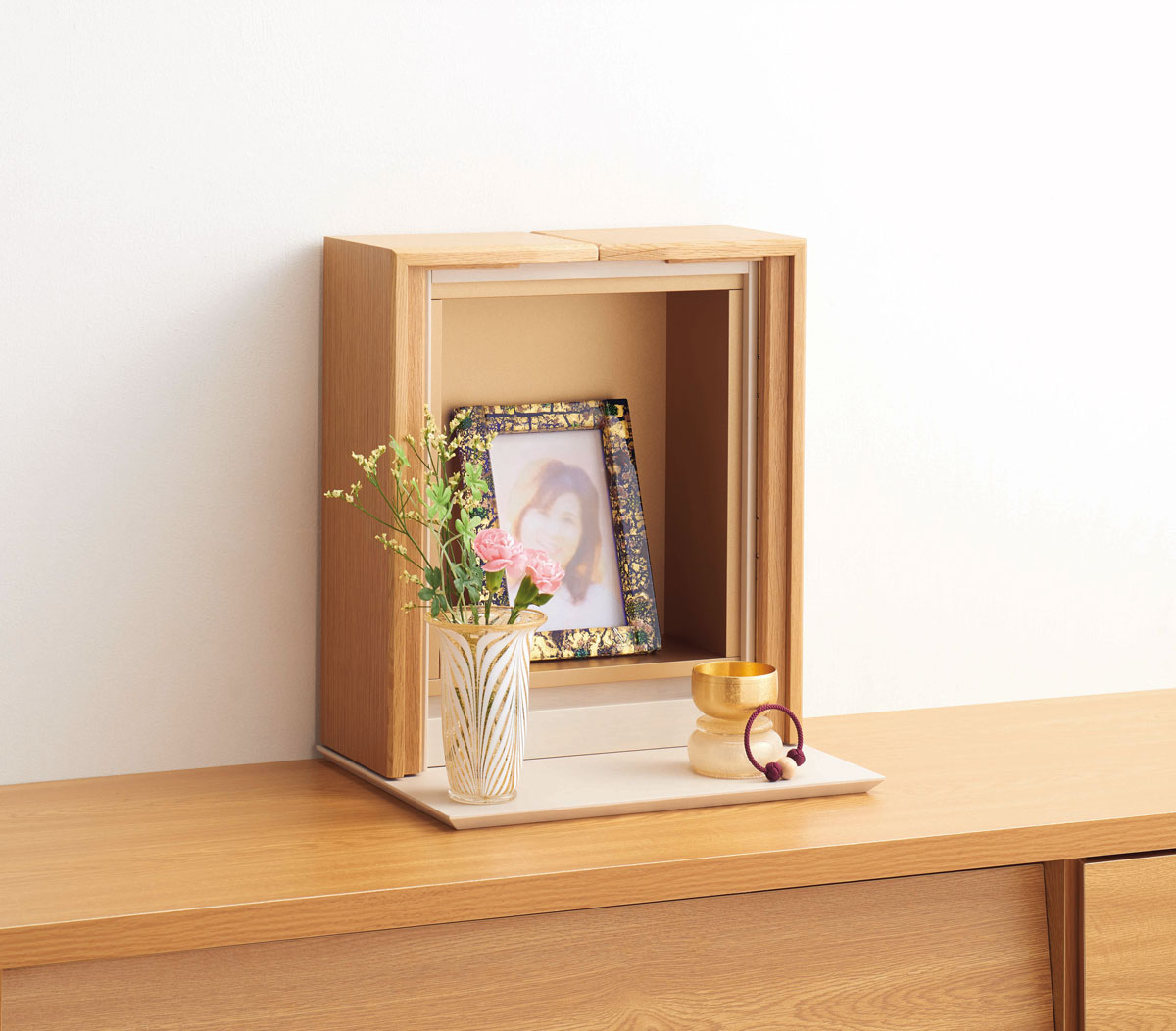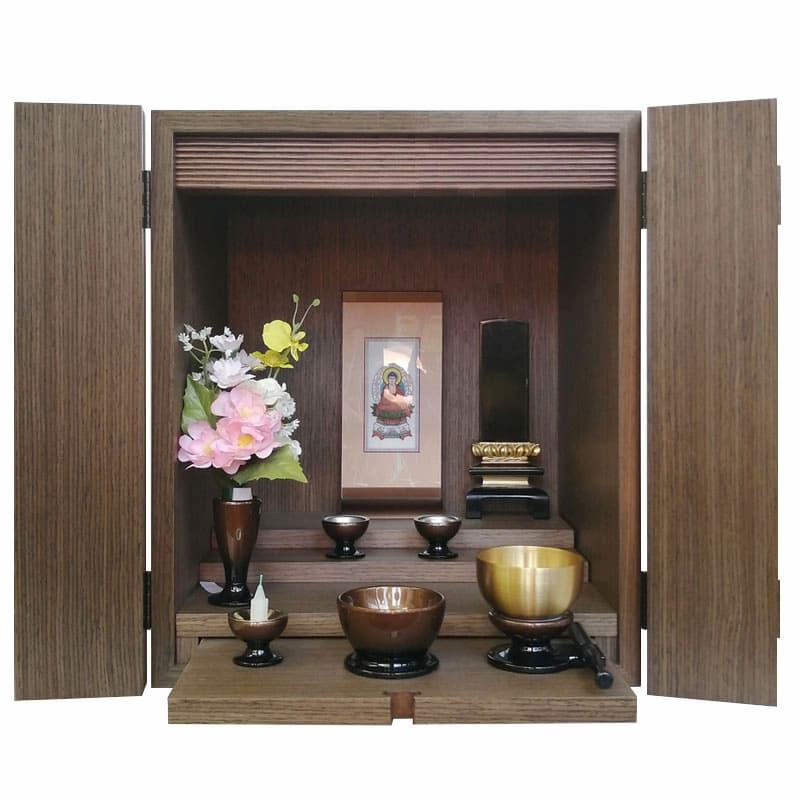 「ミニ仏壇」とは、洋服ダンスや棚の上に置けるコンパクトなサイズの仏壇です。
