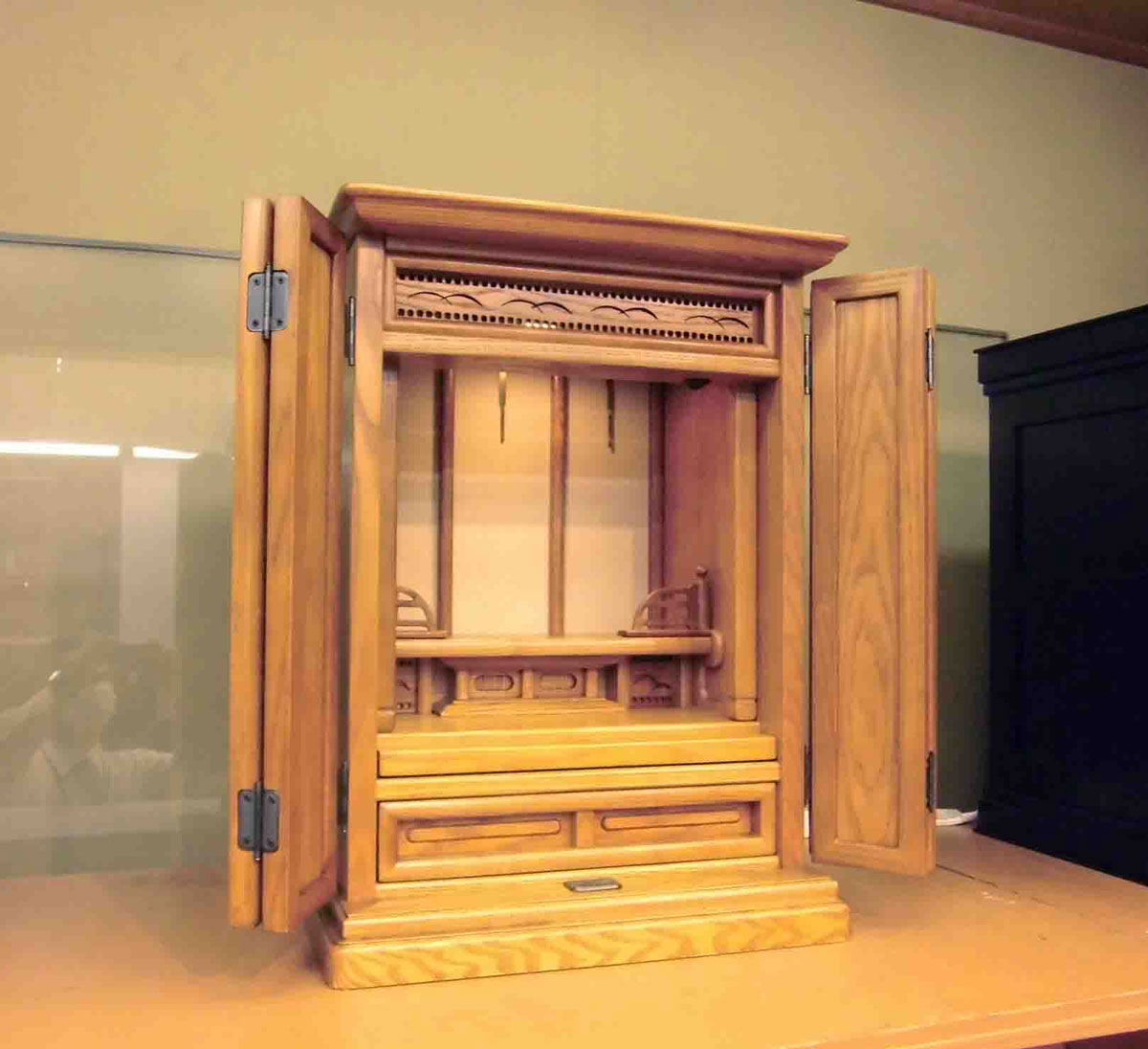 象嵌やカリンの蝶番などのクラフト技術を用いたお仏壇。