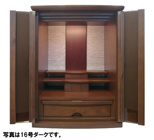 胡桃の天然木を使用しており年月が経つごとに深みのある味わいをお楽しみいただけるお仏壇となっております。
