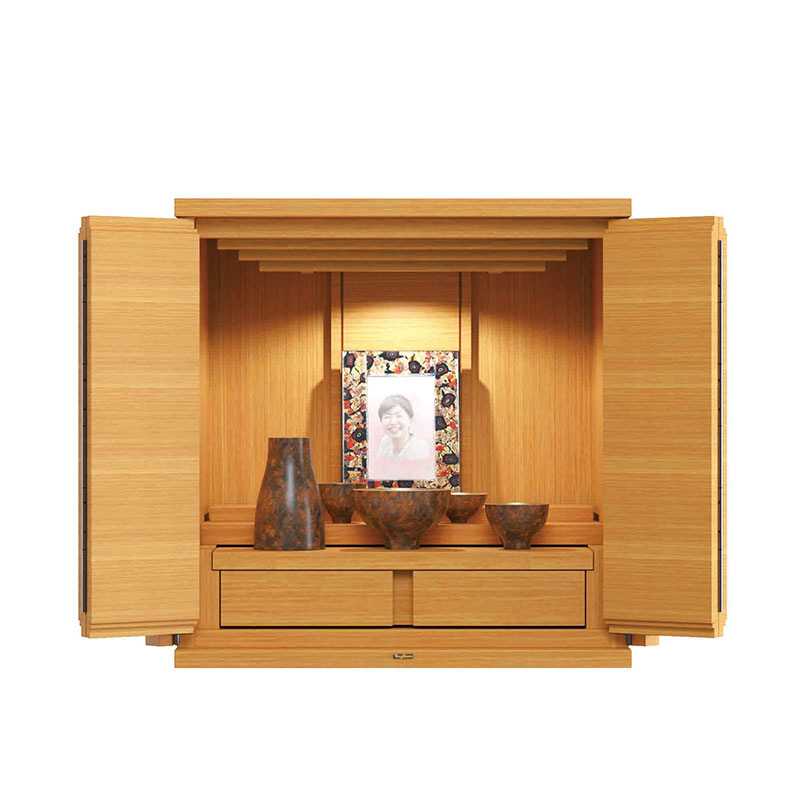 明るい色合いのシンプルなデザインのお仏壇。