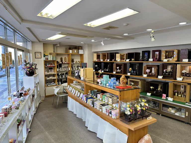 親身になって、あなたのご家庭に相応しい仏壇選びをお手伝い致します。葬祭関連用品、お盆商品も充実。葬儀相談も含め仏事全般の対応を行なっております。