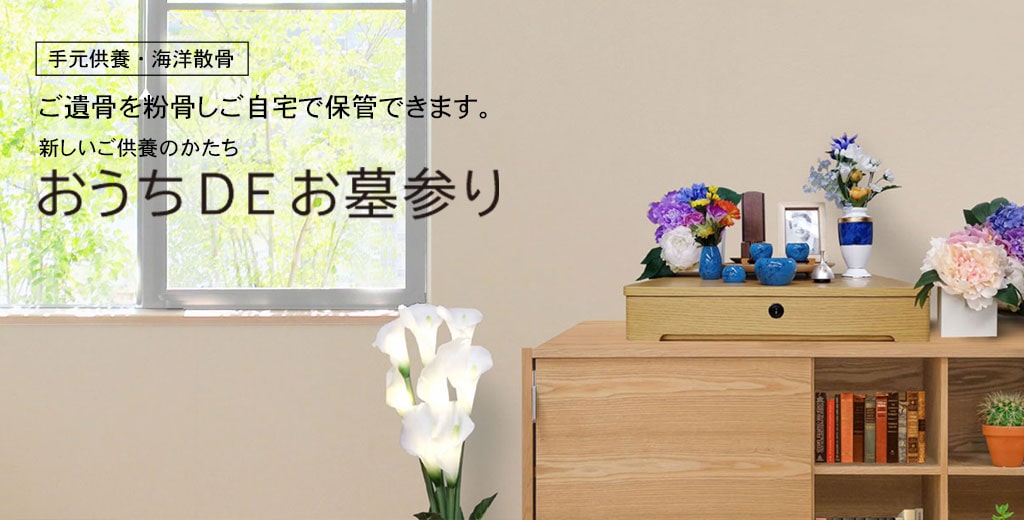 手元供養とは、故人の遺骨や遺灰をパウダー状に粉骨し、ご自宅で故人を偲ぶことのできる新しいご供養のかたちです。自宅供養とも呼ばれます。