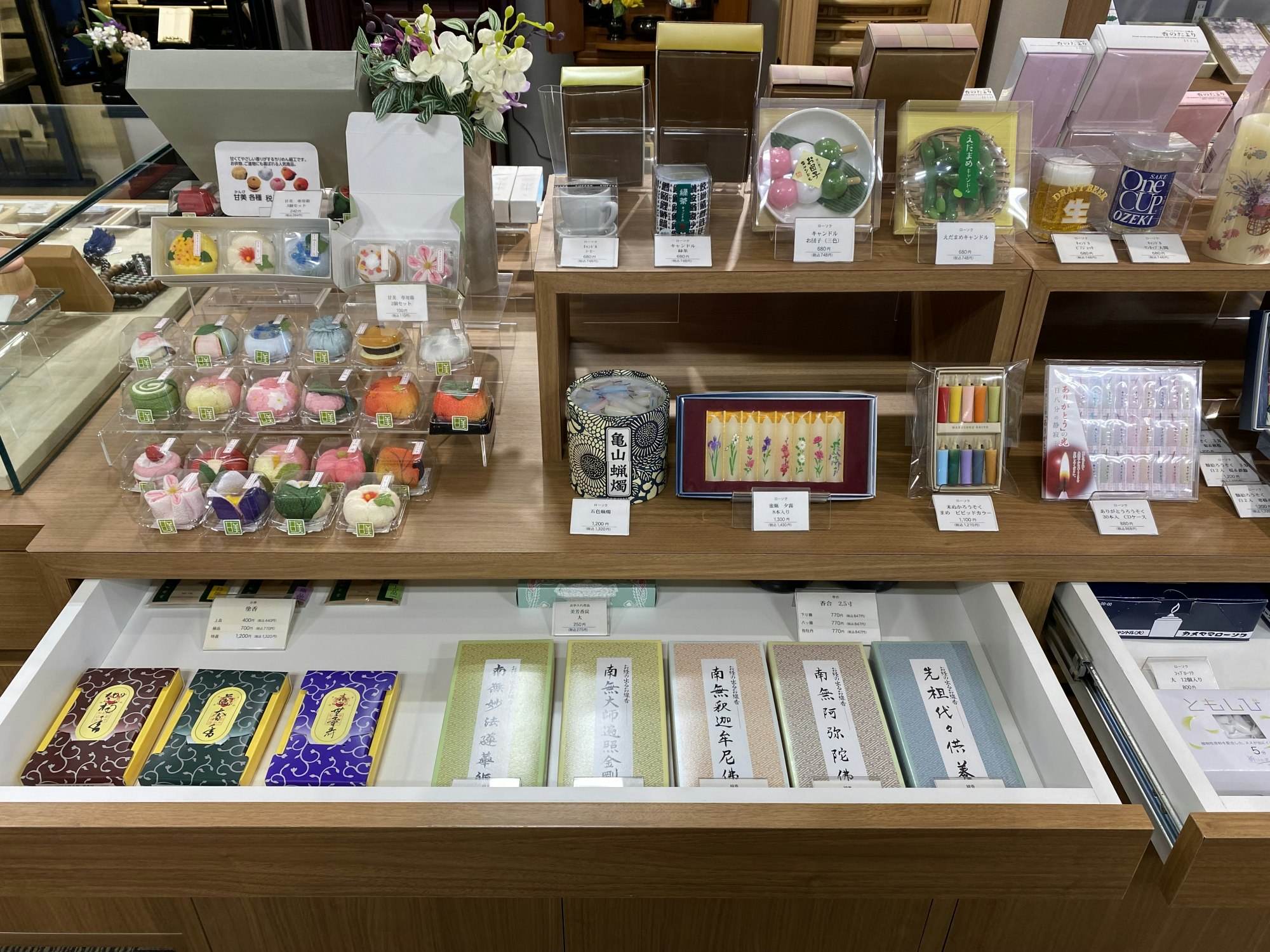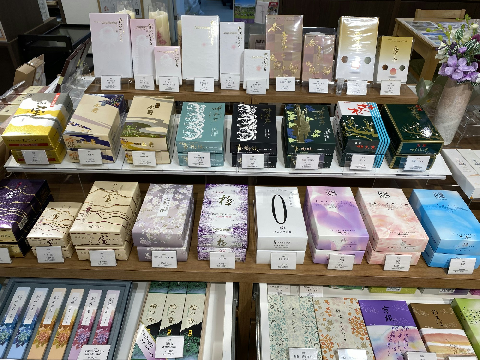 ビアジョッキやワインの形をしたローソクや、コーヒーやお茶の香りがするお線香などの最新商品も豊富に取り揃えており、はせがわオリジナルの沈香(香木)をふんだんに使用したお線香『永遠の今』、『香のたより』は特に人気のシリーズです。お客様がゆったりとお買い物ができるように意識した店内は居心地がよく、落ち着いた癒しの空間が広がっています。