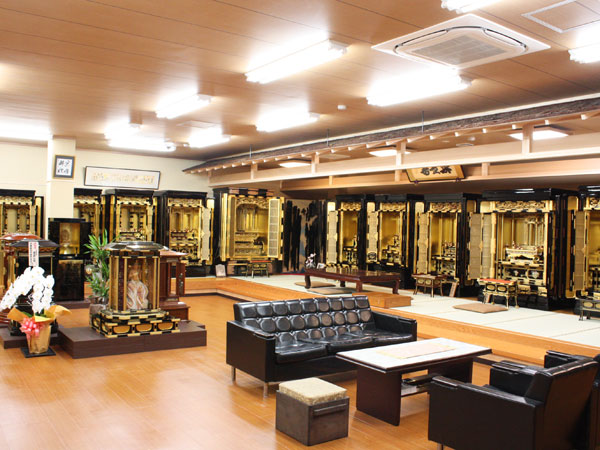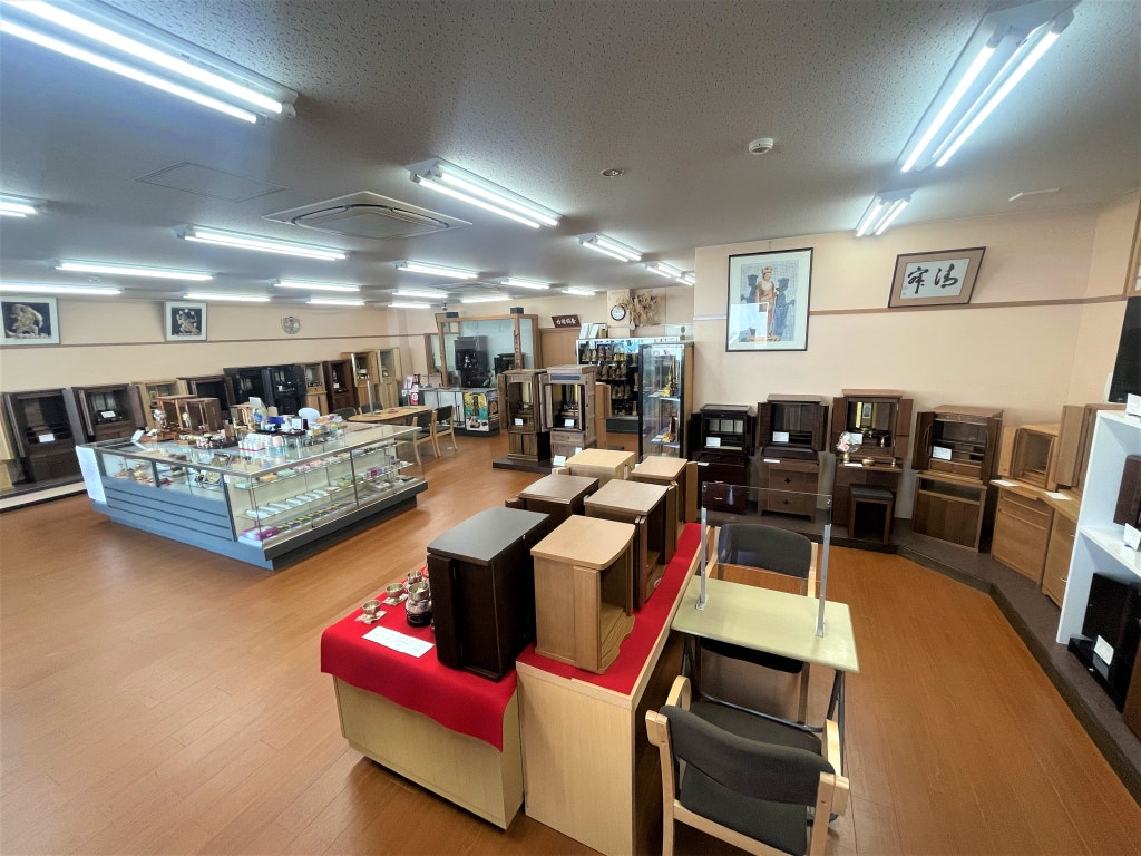 「見やすい店舗」をコンセプトに、お仏壇の種類ごとに展示コーナーを分けて展示されております。