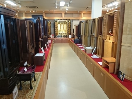 富山県伝統の金仏壇をはじめ唐木仏壇・現代調仏壇など多数展示