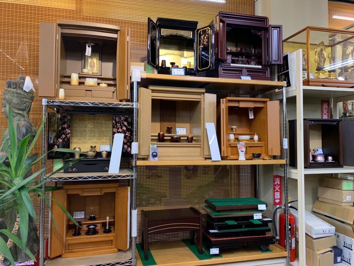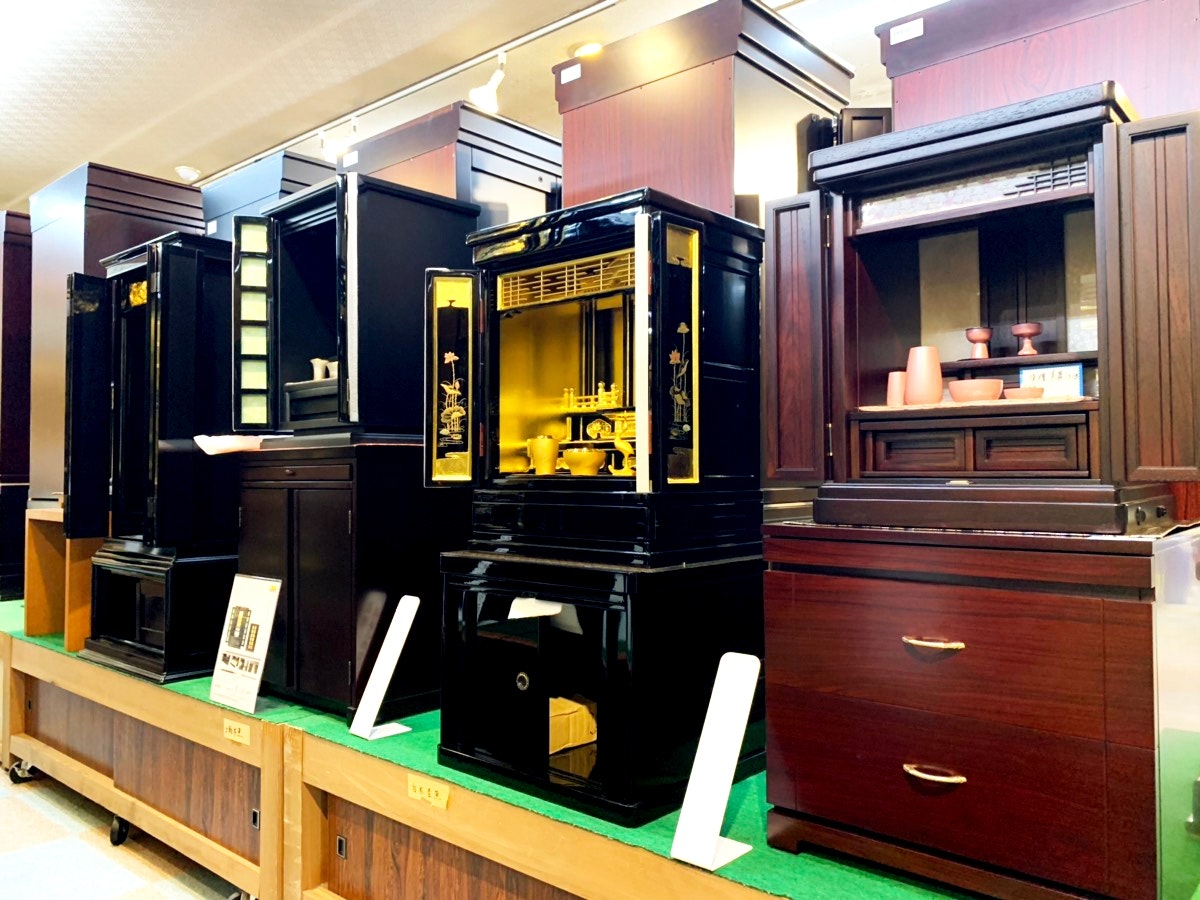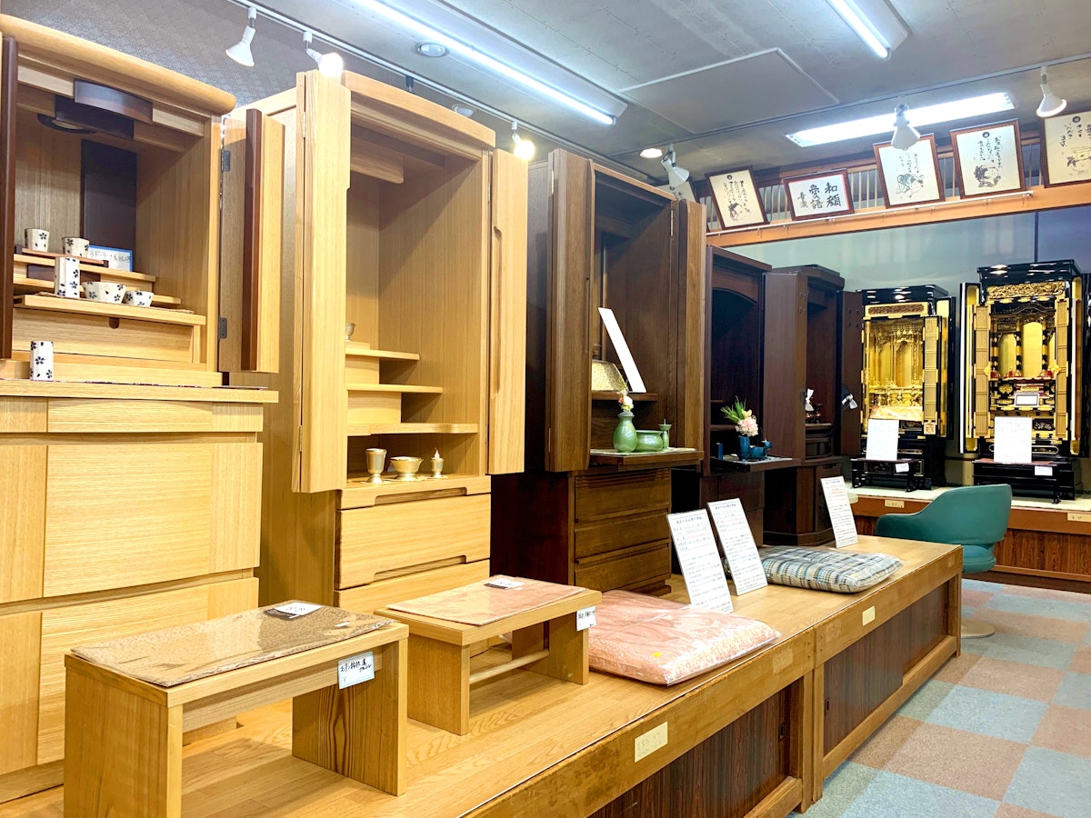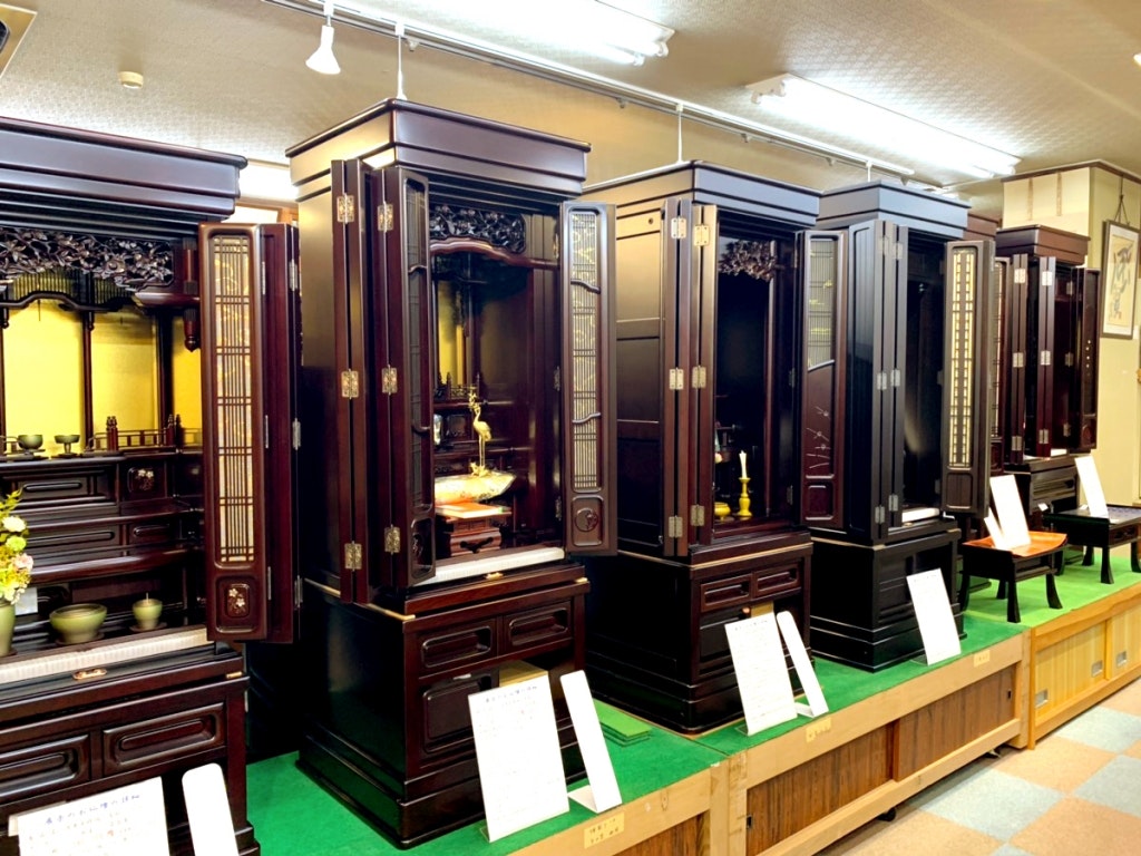 富山県伝統の金仏壇をはじめ唐木仏壇・現代調仏壇など多数展示
