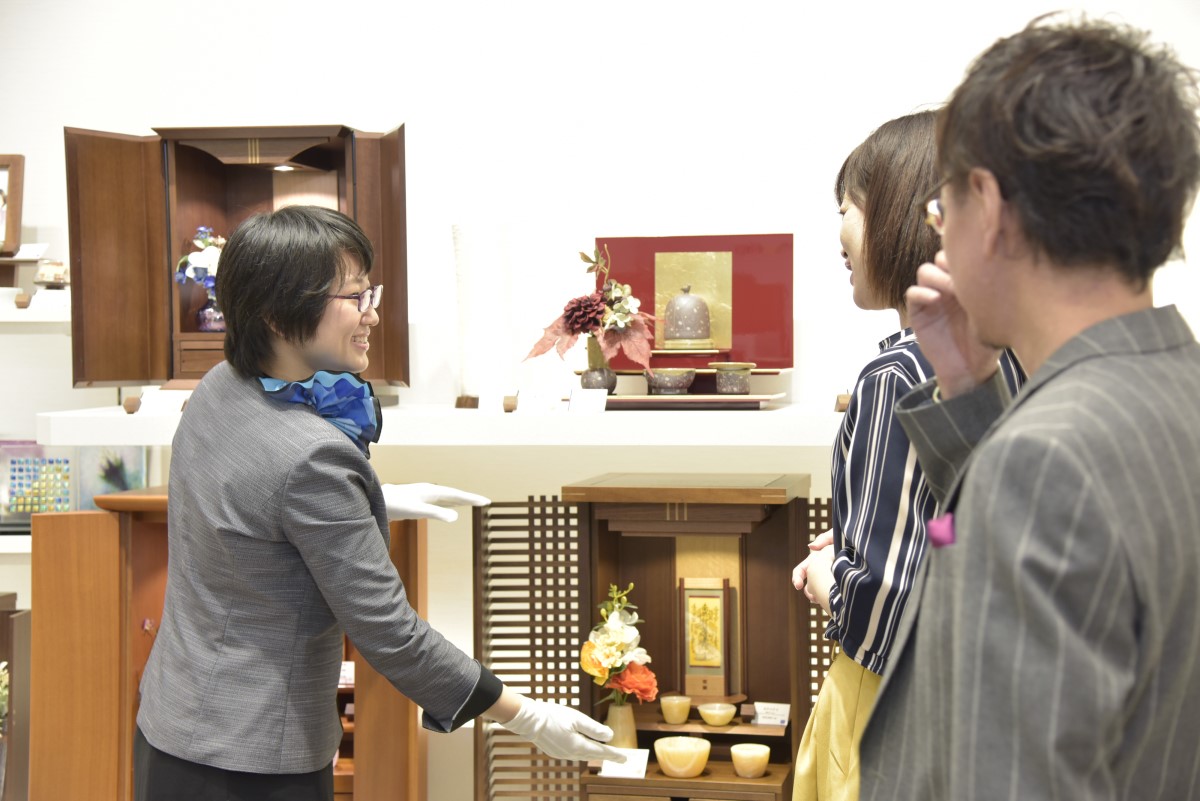 葬儀社ならではの強みを活かしたサービスで、仏壇店の価値を高める狙いがありました。葬儀社や仏壇店に敷居の高さを感じている方は多いです。その点、ショッピングモールや百貨店内の終活相談コーナーには買い物のついでにふらっと立ち寄れる気軽さがあるのでしょう。お客さまからは大変好評をいただいています。