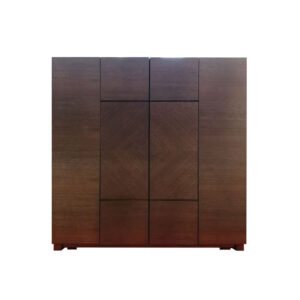 市松模様の扉は跳ね上げ式で横幅を取らないコンパクトデザイン。おしゃれなキューブ型のクラフト感あふれる仏壇です。