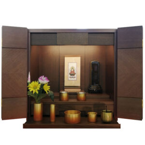 「ミニ仏壇」とは、洋服ダンスや棚の上に置けるコンパクトなサイズの仏壇です。
