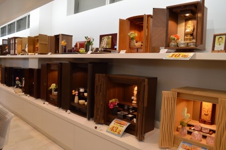1階では、コンパクト仏壇やモダン仏壇、唐木仏壇・お仏具等を中心に展示を行っています。